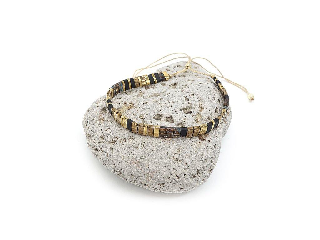 Náramek je navléknut na posuvné nylonové šňůrce, a tak padne na zápěstí o obvodu v rozmezí 15-20cm.