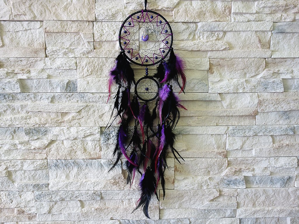 Materiál: mix dřevěných korálků, dřevo, ozdobná peříčka.