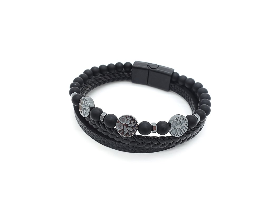 materiál: šedý hematit, černý matný onyx, imitace kůže